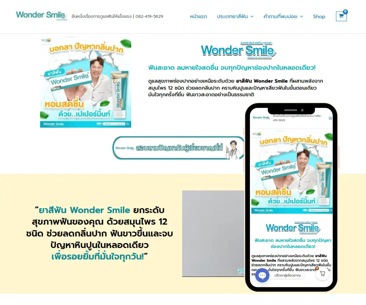 เว็บไซต์จำหน่ายสินค้าและผลิตภัณฑ์ดูแลช่องปากแบรนด์ Wondersmile